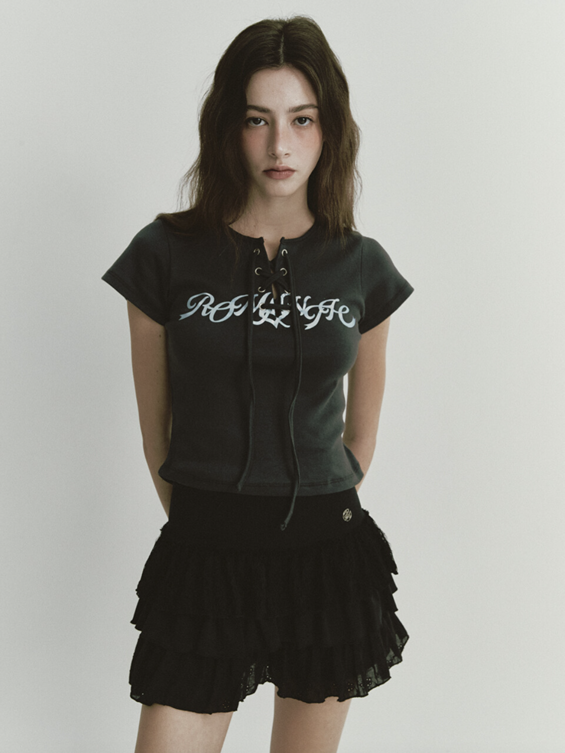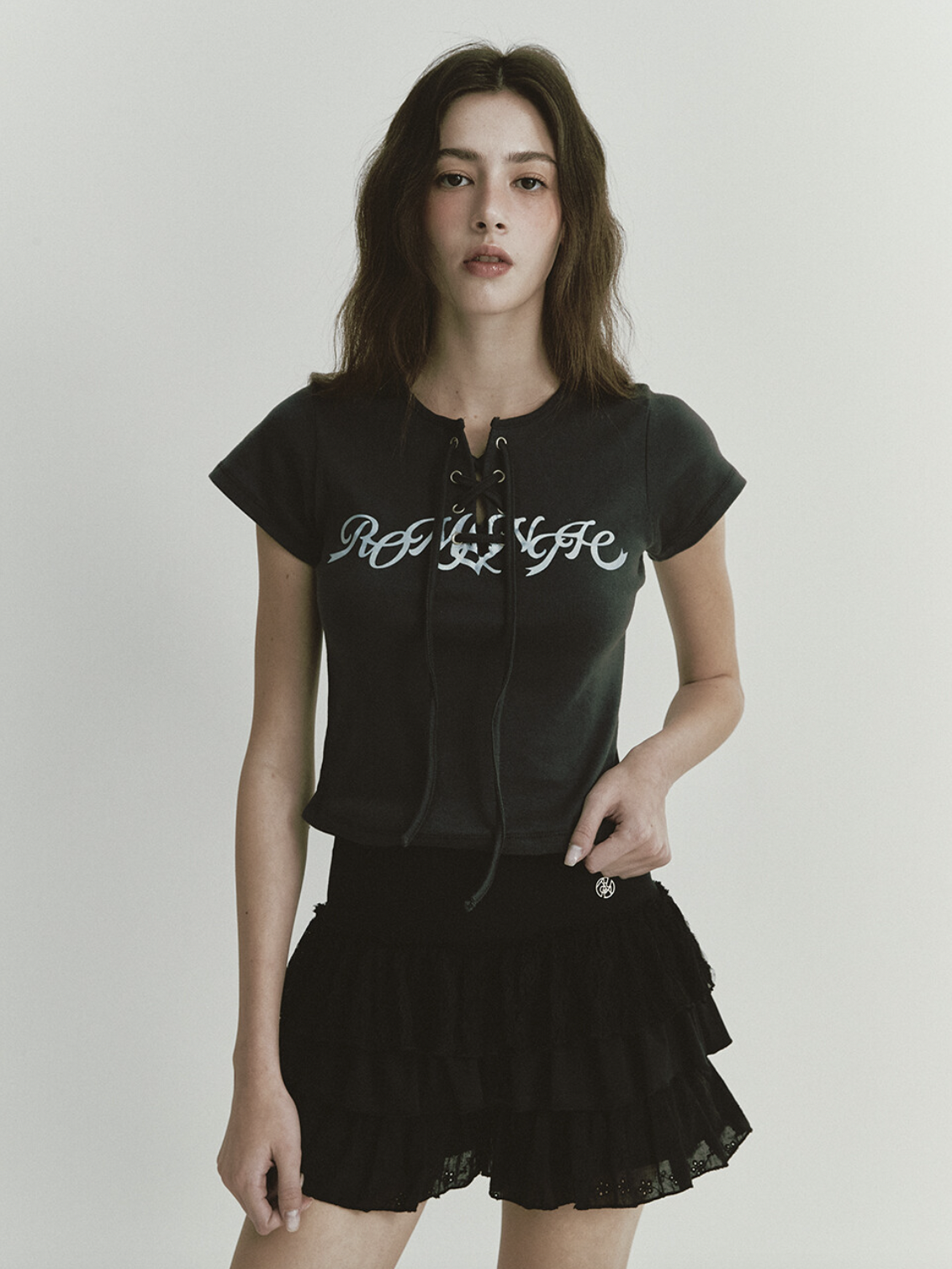 GLITTER LACE UP T (CHARCOAL)