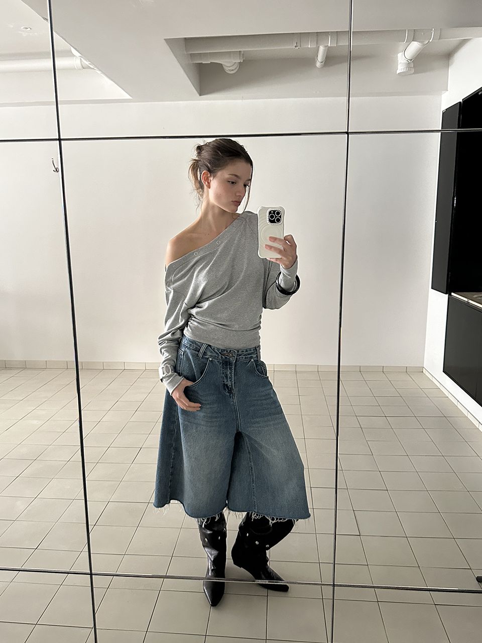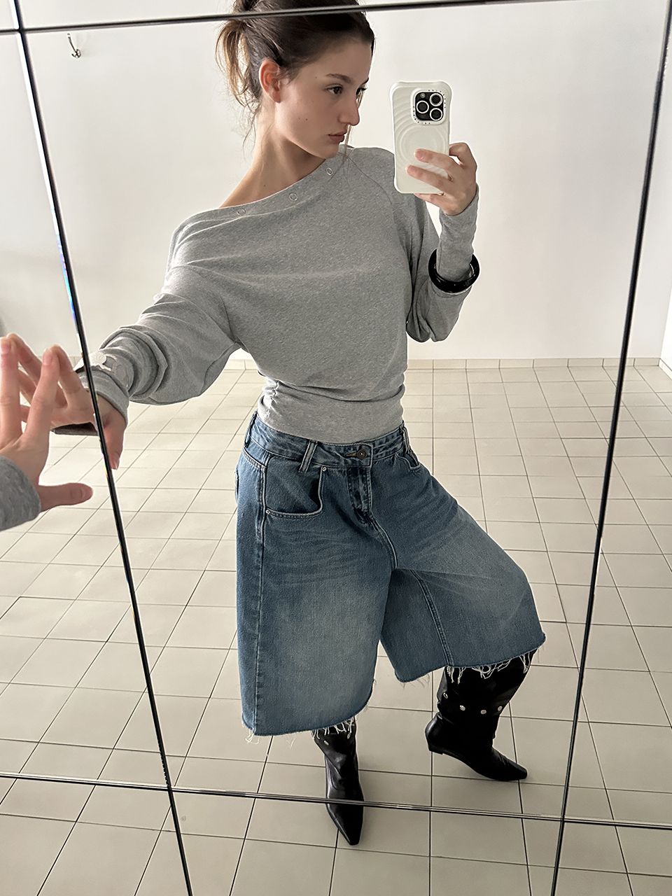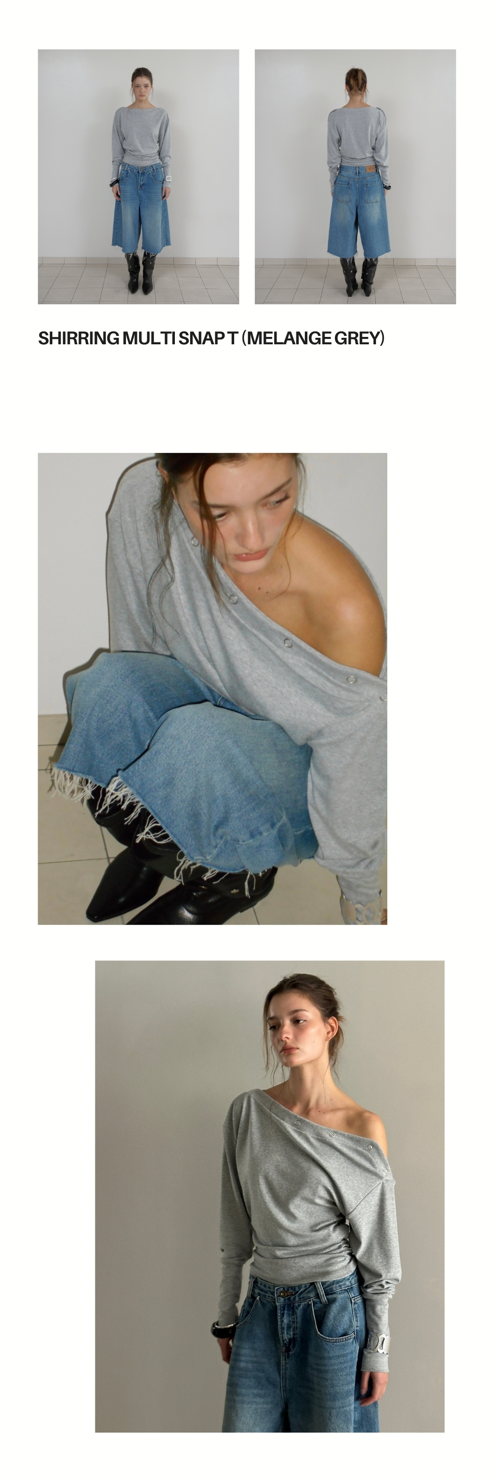 SHIRRING MULTI SNAP T (MELANGE GREY)