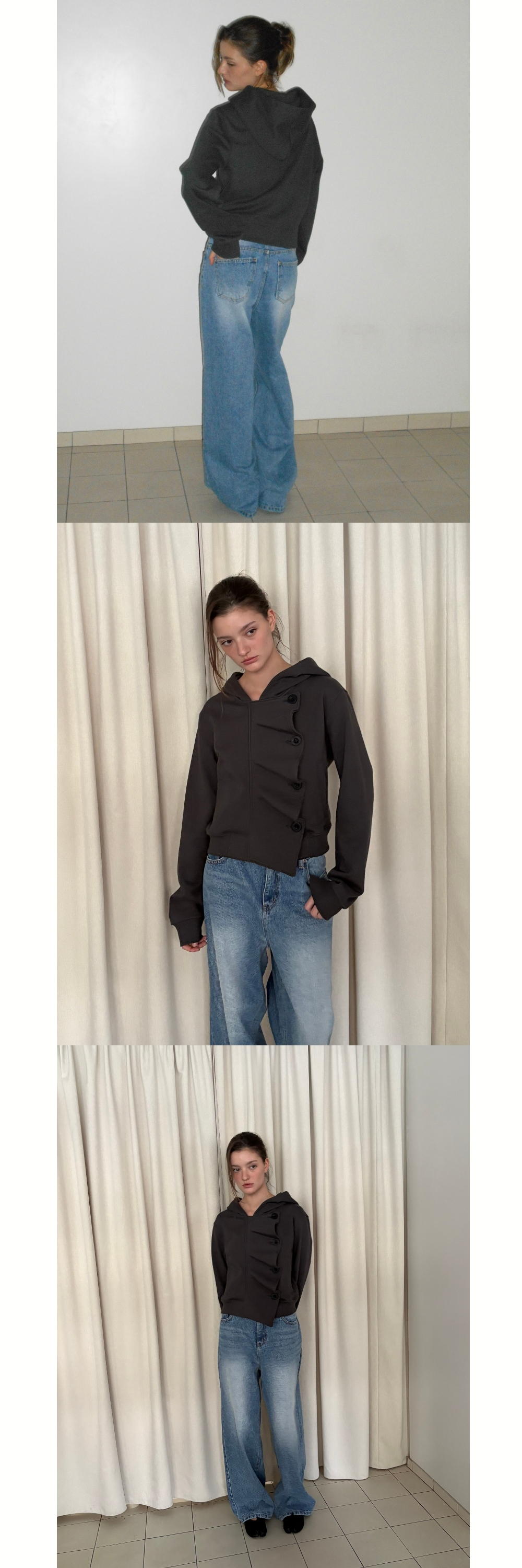 WAVE BUTTON HOOD ZIP UP (CHARCOAL)
